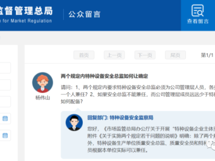 問:請問:1、兩個(gè)規(guī)定內(nèi)要求特種設(shè)備安全總監(jiān)必須為公司管理層人員,各類特種設(shè)備安全總監(jiān)能否為同一個(gè)人兼任?2、如果安全總監(jiān)不能兼任,而公司管理層成員...[詳情]