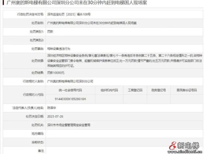 深圳市市場監(jiān)督管理局網(wǎng)站日前公布的廣州奧的斯電梯有限公司深圳分公司未在30分鐘內趕到電梯困人現(xiàn)場案(深市監(jiān)寶處罰〔2023〕福永108號)顯示,廣州奧的斯電...[詳情]