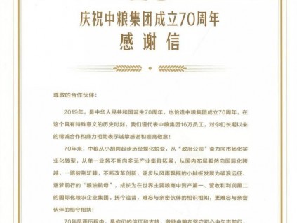 迅達(dá)電梯近日獲中糧集團(tuán)董事長(zhǎng)呂軍先生親筆簽名感謝信,中糧集團(tuán)肯定了迅達(dá)自2014年以來(lái)的傾力付出、行業(yè)領(lǐng)先的產(chǎn)品以及專業(yè)的優(yōu)質(zhì)服務(wù),這也是迅達(dá)電梯繼201...[詳情]