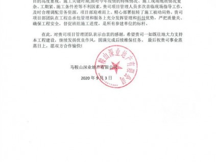 近日,一封工程施工表揚信送到了西繼迅達電梯,來自馬鞍山深業(yè)地產(chǎn)的相關(guān)領(lǐng)導(dǎo)表達了對公司項目管理人員的誠摯感謝。面對今年疫情的特殊情況,公司項目負責人...[詳情]