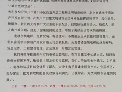 一個(gè)自稱與鄭州市政府已簽訂合作協(xié)議推進(jìn)老舊小區(qū)加裝電梯的公司日前成為眾多加梯業(yè)主關(guān)注的焦點(diǎn)。北京富通孝宇房地產(chǎn)開發(fā)有限公司河南分公司(下稱北京富通孝...[詳情]