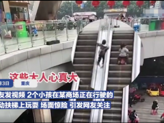 孩子家長(zhǎng)心有多大快看看!兩孩子扶梯上玩耍很危險(xiǎn)!